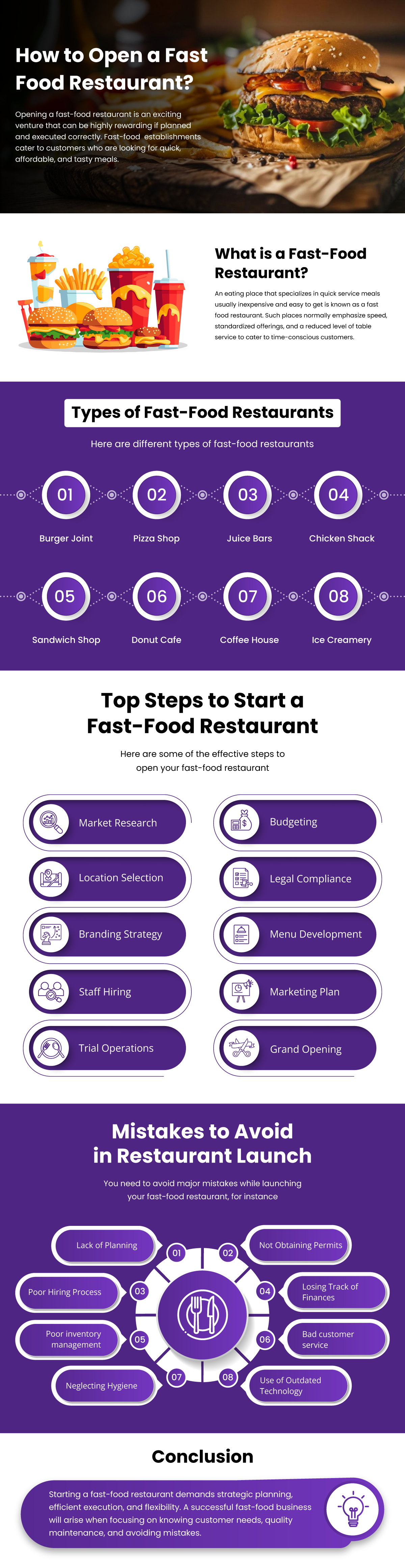 Starting a fast-food restaurant demands strategic planning, efficient execution, and flexibility. A successful fast-food business will arise when focusing on knowing customer needs, quality maintenance, and avoiding mistakes.