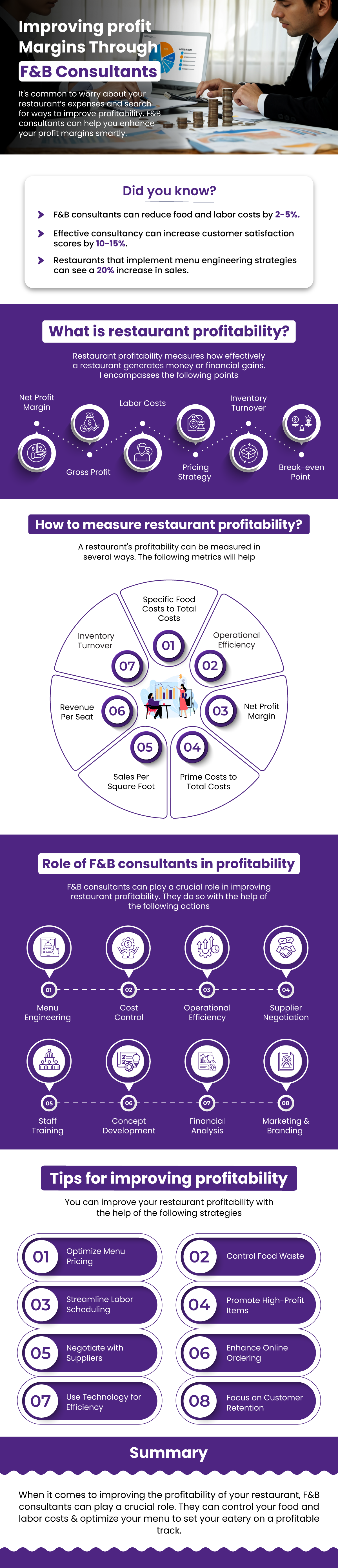 When it comes to improving the profitability of your restaurant, F&B consultants can play a crucial role. They can control your food and labor costs and optimize your menu to set your eatery on a profitable track.