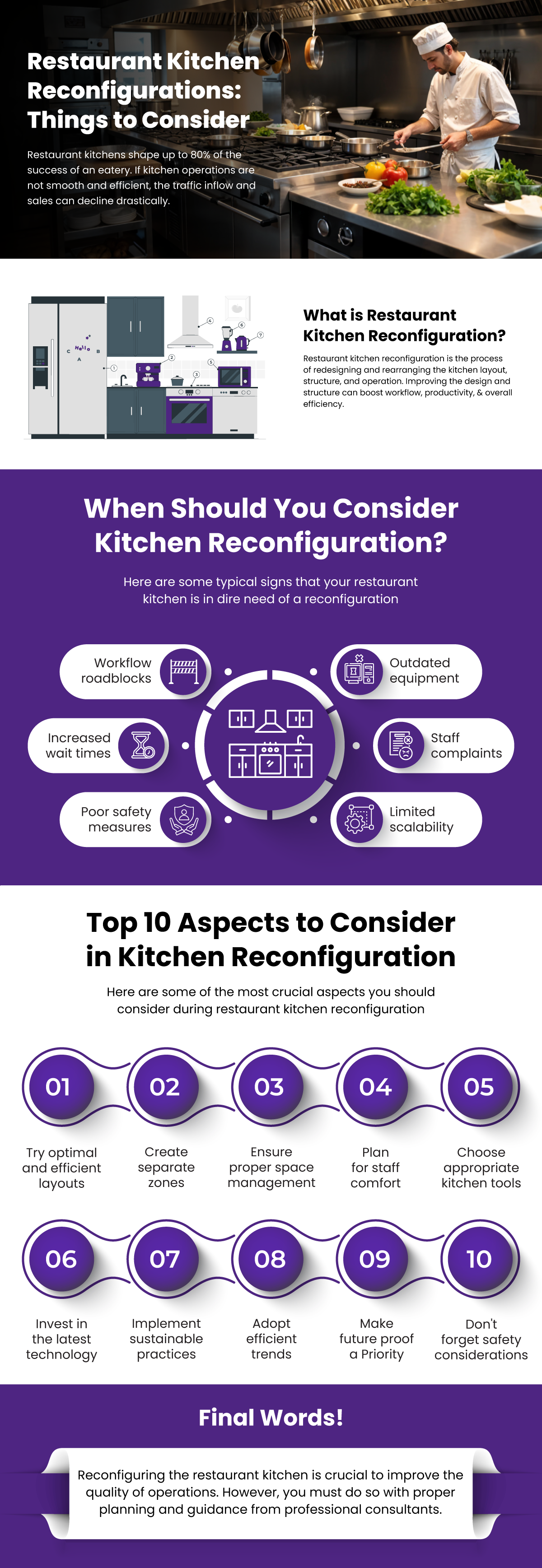 Reconfiguring the restaurant kitchen is crucial to improve the quality of operations. However, you must do so with proper planning and guidance from professional consultants.
